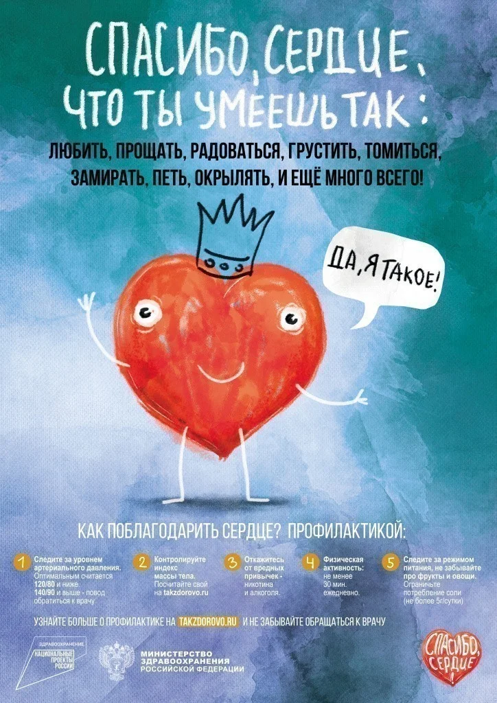 29 сентября отмечается Всемирный день сердца. В этот день АНО «Национальные приоритеты» при поддержке Министерства здравоохранения Российской Федерации и Всероссийского общественного движения «Волонтеры-медики» организуют серию мероприятий, посвященных здоровью сердечно-сосудистой системы и профилактике заболеваний сердца. Все акции проходят в рамках нацпроекта «Здравоохранение».