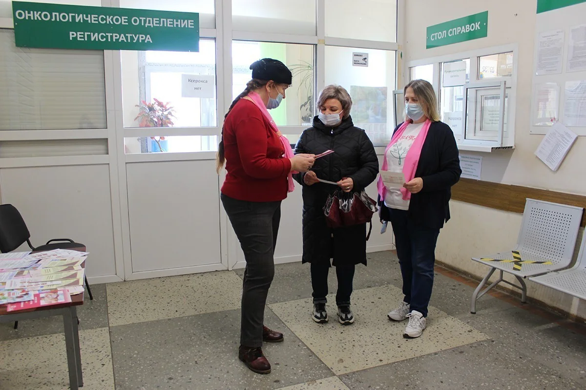Врачам и регистратуре онкоотделения диагностической поликлиники активно помогали волонтеры Калининградской региональной общественной организации «Вита» под руководством Лидии Чашиной. Каждый посетитель мог получить пакет наглядных информационных материалов о профилактике, диагностике и лечении онкологии, в том числе рака молочной железы.