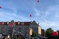 По окончании акции в небо взлетели красные шары, символизирующие первый путь передачи ВИЧ-инфекции – от наркозависимых через кровь.